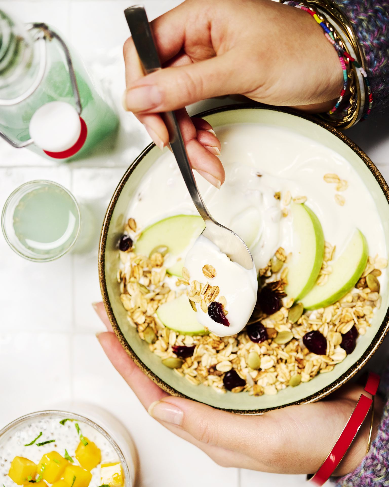 Need some extra motivation to get out of bed in the morning? Say hello to our breakfast bowls! This yummy novelty lifts your breakfast to a higher level ... What can you expect? A joyous combination of textures and flavours: creamy Greek yogurt, crunchy pieces of fruit and a surprising coconut-mango granola. Ready to attack?