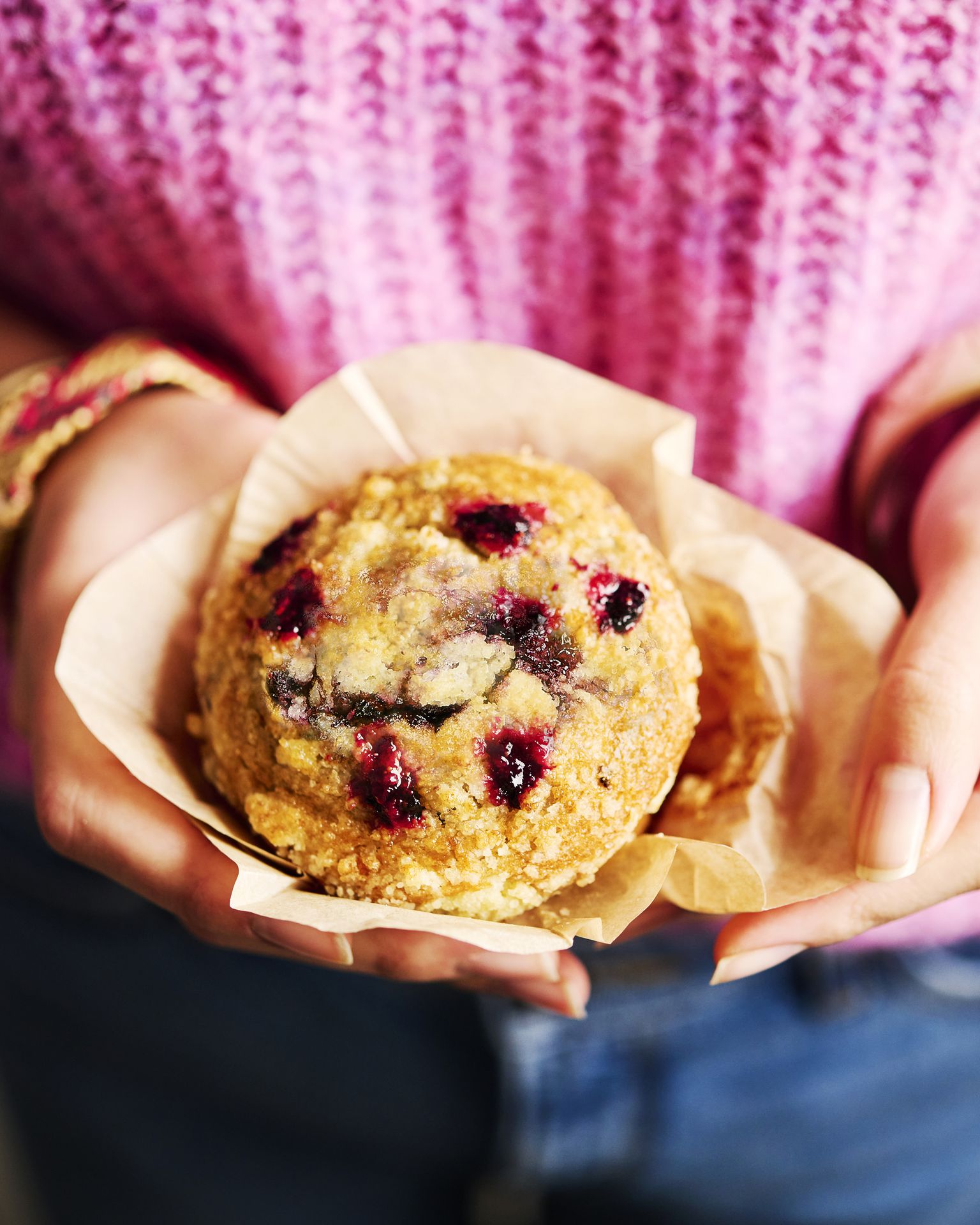 Our organic blueberry muffin… The perfect dessert with blue ingredients to see life through rose coloured glasses